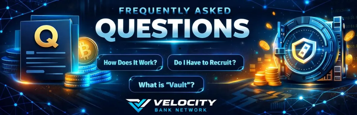 Velocity Bank Network is a decentralized peer-to-peer rewards network powered by community velocity. The contributions and rewards are voluntary peer-to-peer transactions between participants, and the network is not a bank, financial institution, or security offering.